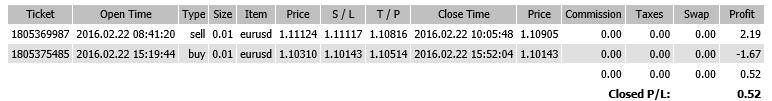 本帖最后由 CXW 于 2016-2-26 11:27 编辑 当天出来3个信号,做了其中两个,结果一胜一负,结算下来当天盈利只有5个点。 考虑到系统目前尚处于创建和测试阶段,为了减少无谓的亏损,决定先暂时将每次交易的手数降 ...