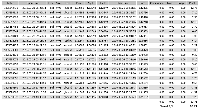 本帖最后由 CXW 于 2016-3-24 22:49 编辑 因为家里出了点急事需要处理,所以明天就没法继续交易了,本周的交易先到此为止。 本周共进行了20次交易,其中以正常止盈出场的交易为7次,以止损出场的交易为2次,因为 ...